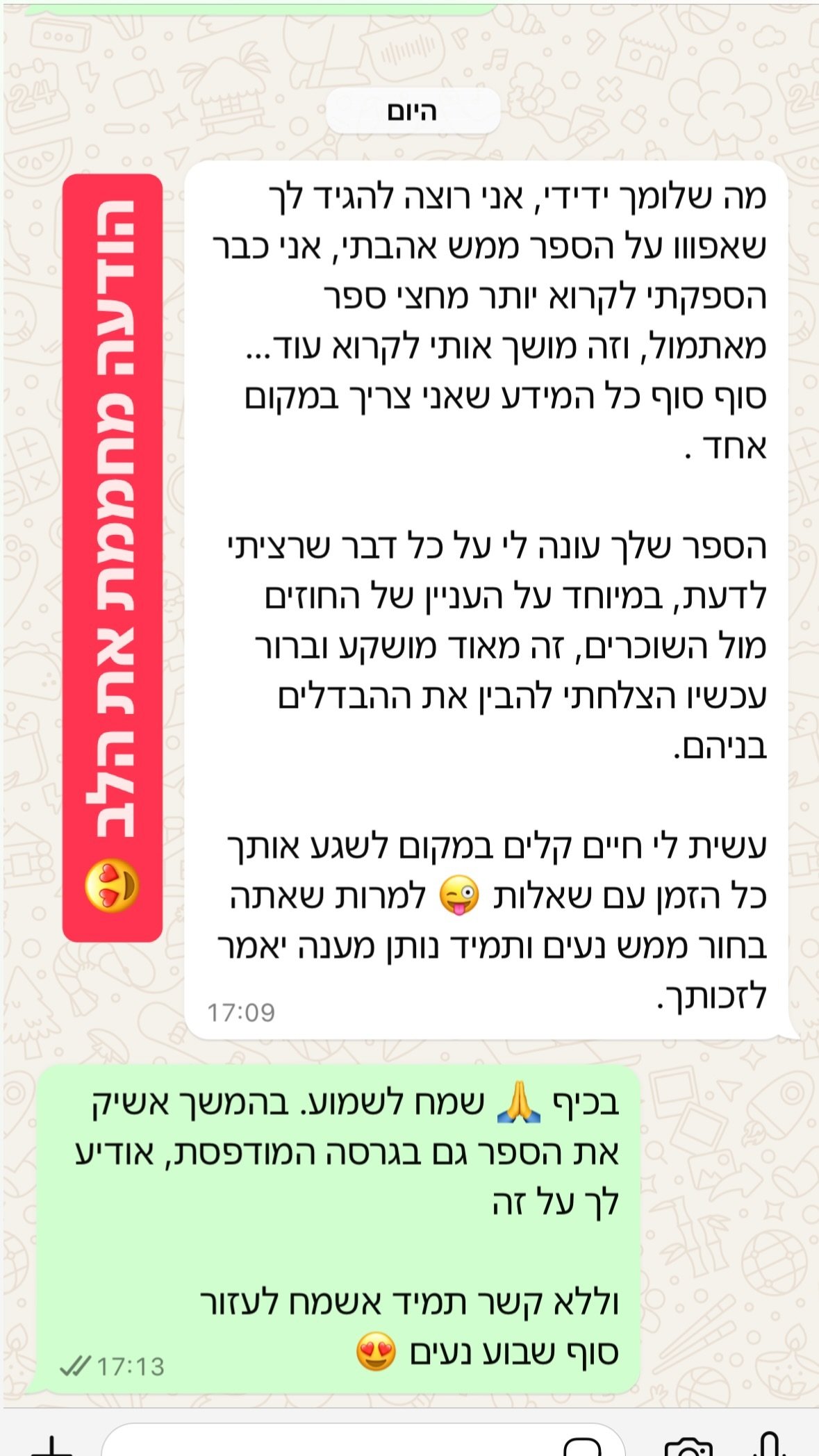 ממש לא. אין שום התחייבות להמשך ליווי. אתם יכולים לבחור להסתפק בפגישה בלבד, או להחליט להמשיך איתי במסלול ליווי מלא – לפי מה שמתאים לכם.